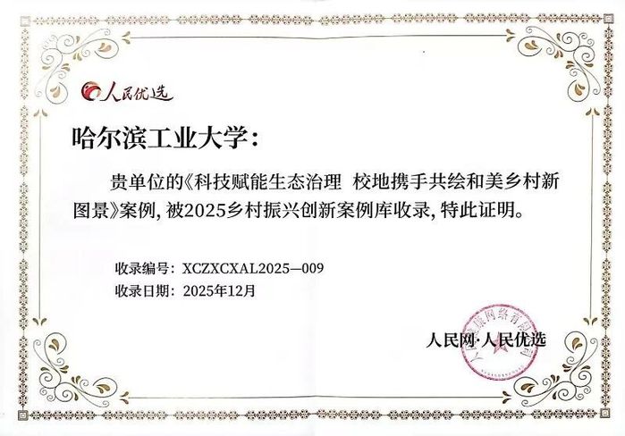 日前,由人民网主办的2025乡村振兴大会在北京召开。会上,2025乡村振兴创新案例库正式发布上线,哈工大环境学院报送的《科技赋能生态治理 校地携手共绘和美乡村新图景》案例凭借其创新性、实效性和可推广性成功入选,成为高校助力乡村生态振兴的典型案例。