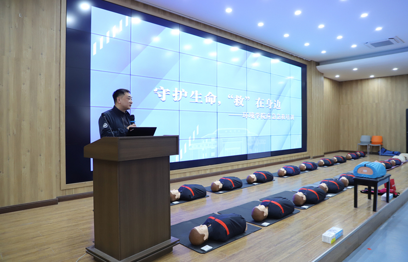 培训以理论讲解与实操演练相结合的形式展开。蓝天救援队专家围绕心肺复苏(CPR)、自动体外除颤仪(AED)的使用、气道异物梗阻处理等关键环节进行了系统讲解,并通过现场演示展示标准操作要点与注意事项。实操环节中,救援专家一对一指导现场师生,手把手纠正动作细节,帮助大家准确掌握“黄金四分钟”内的急救要领。
