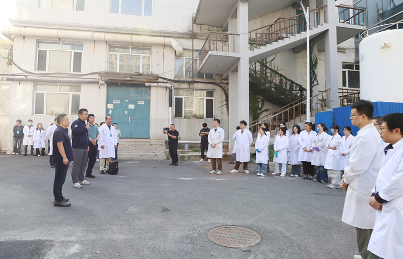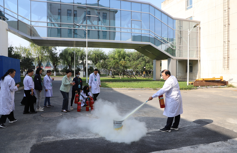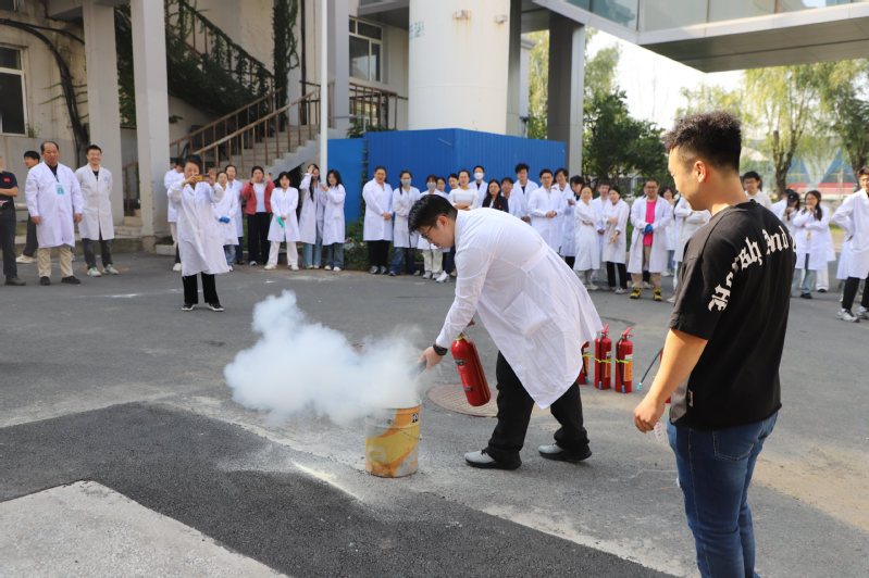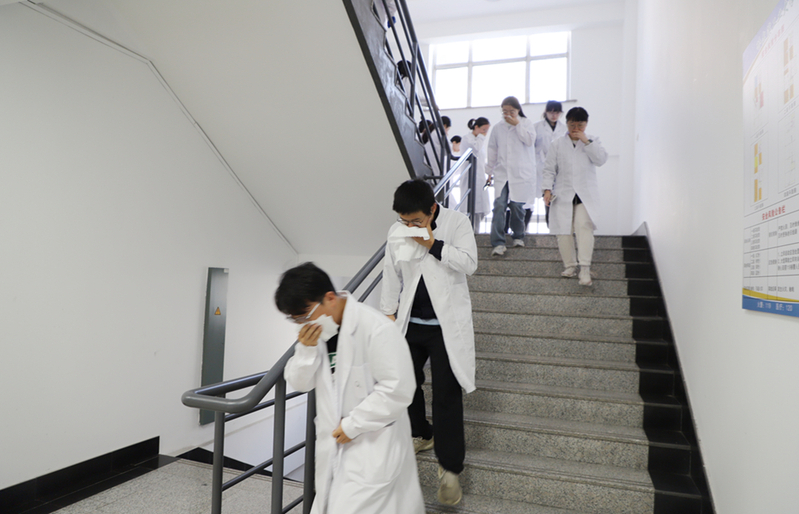 演练当日,随着模拟“火情”触发,烟雾报警器随即响起,疏散组迅速响应,师生在消防队员引导下,用湿毛巾捂住口鼻,低姿快速有序撤离至指定安全区域。到达后,实验中心党支部书记、副主任郭亮详细讲解了各种消防器材的种类、性能、使用方法,以及不同火灾情况下的应急处理和逃生技能等知识。消防人员还现场演示了如何正确使用消防水带、灭火器等常见设备,师生们积极参与操作,进一步掌握了灭火技能和应急处置流程。