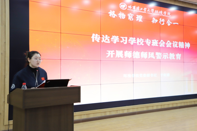 围绕学校专班会议精神以及师德师风建设的工作要求,学院党委副书记于虹霞对近期典型案例和相关文件精神进行了认真传达和警示教育。环境学院副院长魏亮亮、副院长王威、院长专项助理范胜强依次宣贯了学院新修订的《环境学院关于强化全日制定向委托培养/非全日制工程博士培养过程管理的相关要求》《环境学院关于加强同等学力硕博士招培、专项班建设、行业培训等工作的若干举措》《环境学院海外人才引进工作办法》《环境学院加强引导科研方向转型的若干措施》等制度文件,重点围绕学生培养、引才办法、科研转型等相关制度文件进行了逐条解读与说明。